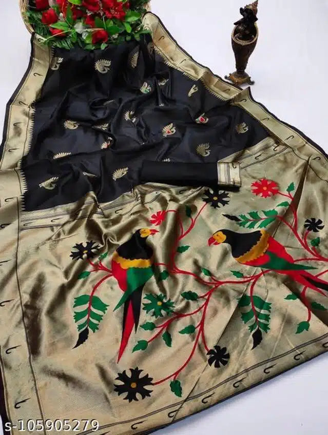 Banarasi Silk Saree With Blouse For Women (Green, 6.3M)